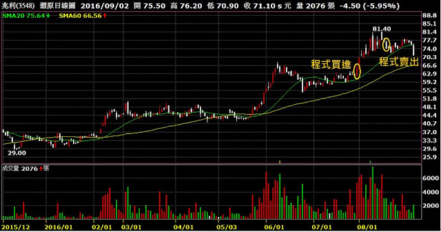 - 在突破盤整區的時候,程式自動執行買進的動作